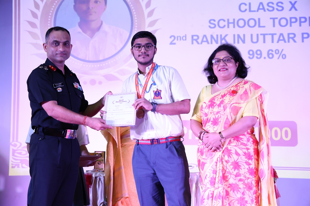 In the Felicitation Ceremony, the Chief Guest Brigadier BS Jasrotia, Mrs Vandana Jasrotia and Principal, Mrs Jyoti Rana presented the awards and certificates to the toppers of the CBSE Board Exams, the winners of the Ethics Bowl Runners Up. Trophy and the winners of various sports tournaments. In his key note address, the Chief Guest urged the students to follow three rules in life – to persevere, to remain positive and to be good human beings who strive to keep themselves fit and healthy to contribute to the progress of the society. The programme culminated as the Head Prefect, Karan Tiwari proposed the Vote of Thanks and the school choir rendered the national anthem.