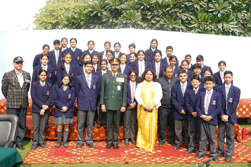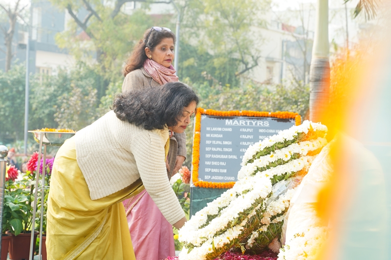 The 23rd Annual Wreath Laying Ceremony, organized by the Noida Shaheed Smarak Sanstha, took place on February 14, 2024. Air Chief Marshal Vivek Ram Chaudhari PVSM, AVSM, VM, ADC, Chief of the Air Staff, graced the occasion as the Chief Guest. Representing the school, Mrs. Indrani Neogi, Acting Principal, along with five teachers and 70 students from APS Noida attended the ceremony. Mrs. Indrani Neogi, along with Mrs. Bhagawati Bisht (TGT Mathematics) and three students from Class IX, namely Ms. Akshita, Master Pranav Tiwari, and Master Ojaswi Singh Rana, were honored to lay wreaths and pay homage on behalf of the APS Noida community.