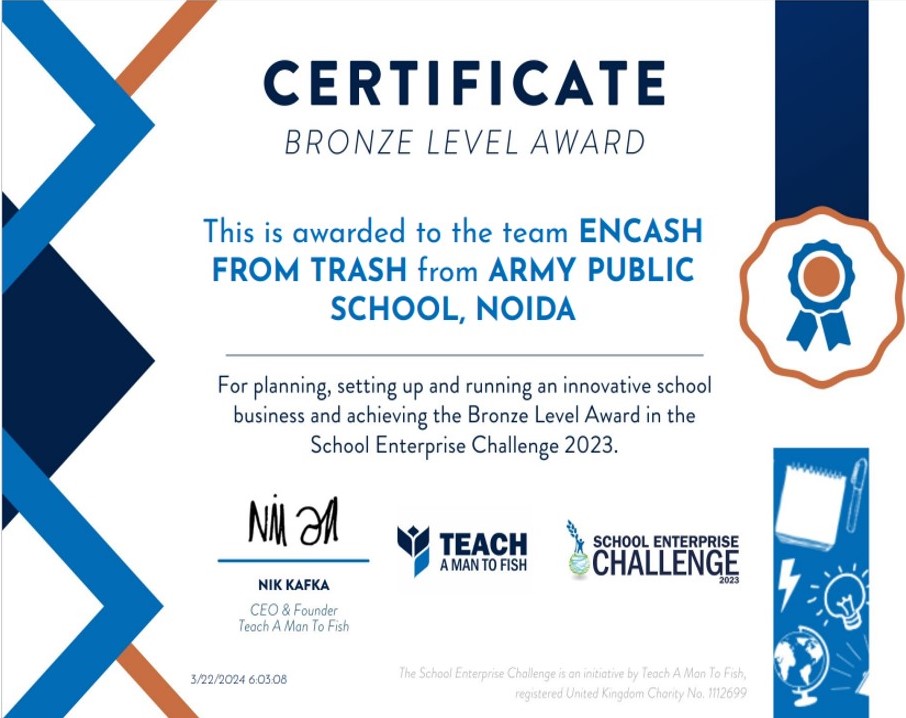 Army Public School NOIDA won a Bronze Medal in the competition.