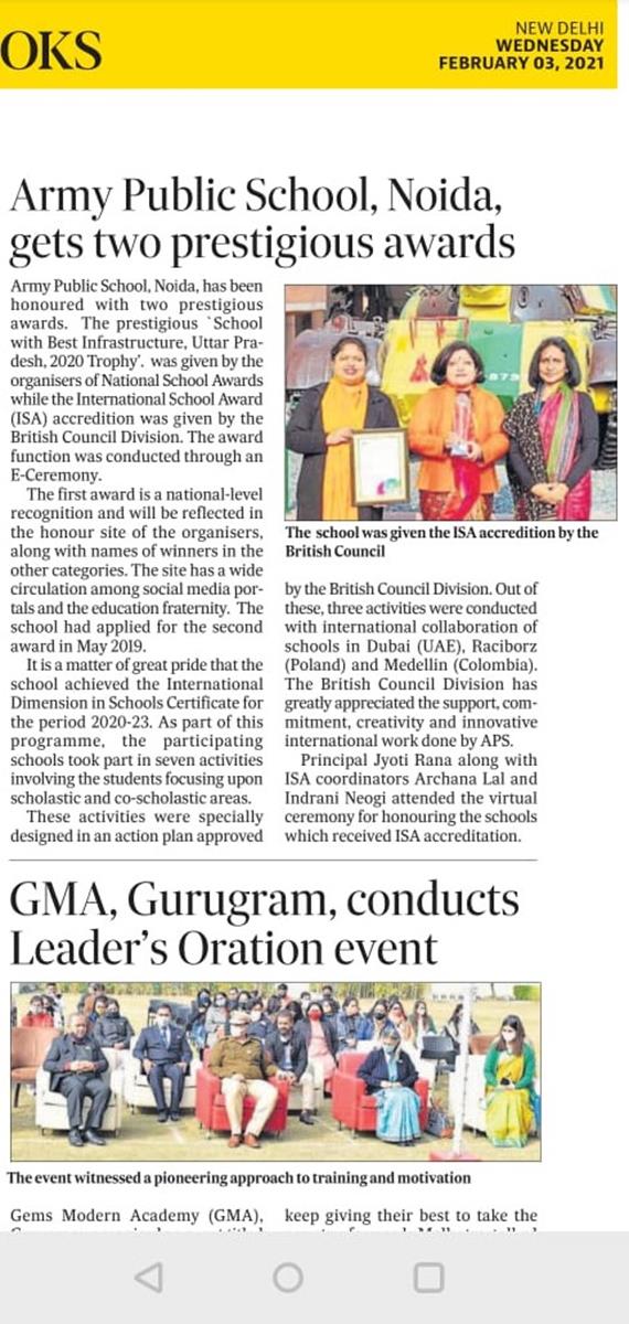 Army Public School Noida gets two prestigious awards.